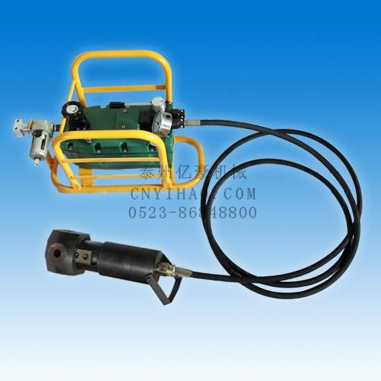 气动锚索切断器,专为煤矿井下作业设计。在巷道里掘井支护、 巷修时, 可安全快速地剪断外露锚索, 性能可靠、 力量大、 重量轻、 操作携带方便, 刀刃可拆卸、 可旋转, 适合于多方位、 各种环境的 工作面; 将切断器与气动油泵用胶管连接起来极大地提高了工作效率, 减轻了劳动强度, 深受井下工人的欢迎。